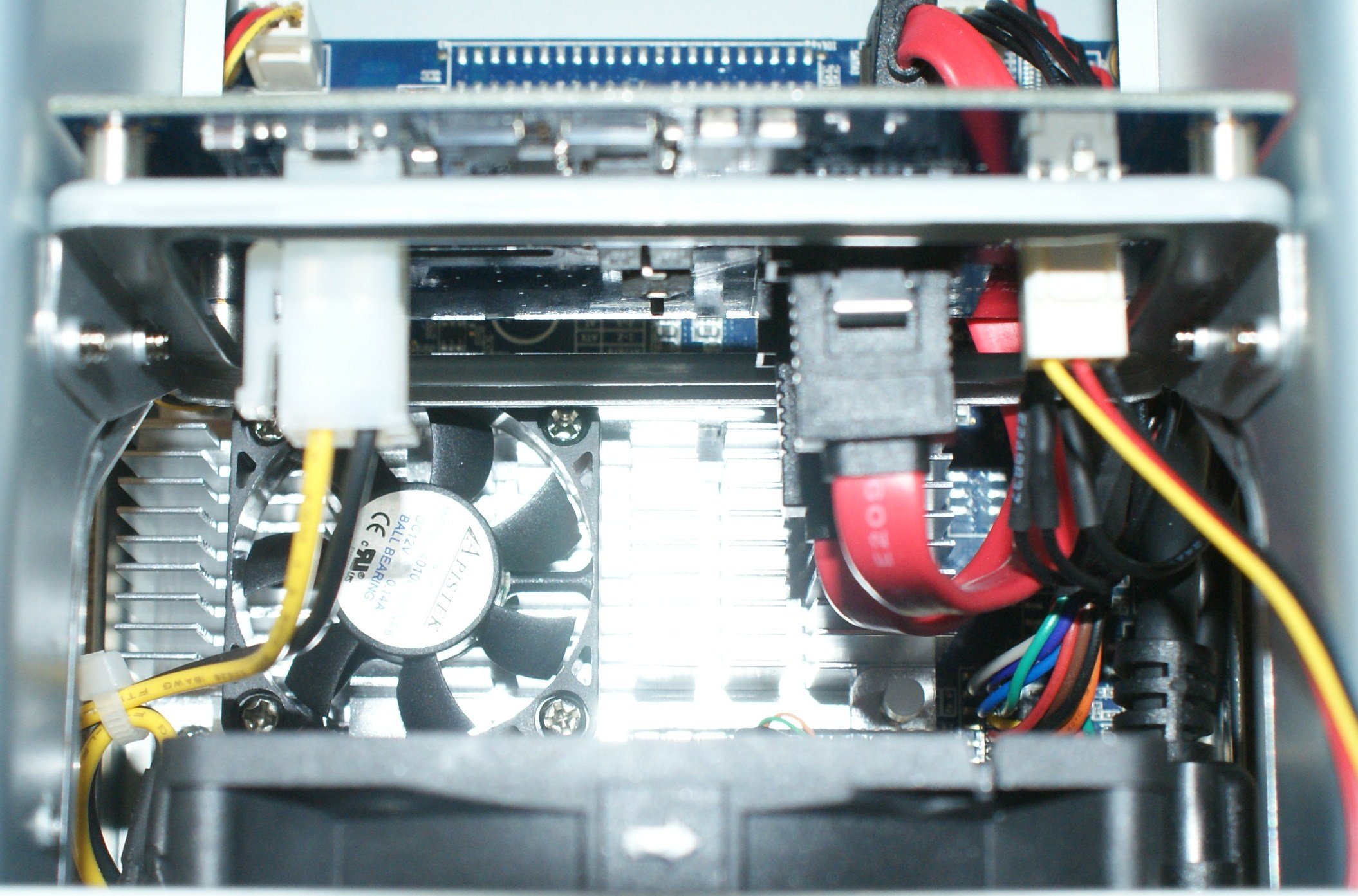It features one slot for up to 2GB of DDR2 RAM, two 3.5 inch SATA drive bays, 3 USB ports and a gigabit Ethernet. The system retails for £247 in the UK.