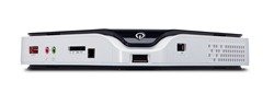 In its day job, this is a great little device. Safely screwed to the back of an LCD TV, the R3610 just peeps its power switch over the top of the screen so you don’t have to grope around the back to turn it on. With similar attention to detail, the multi-card slot and some USB ports are up facing so you can insert memory into them without having to resort to moving the TV.