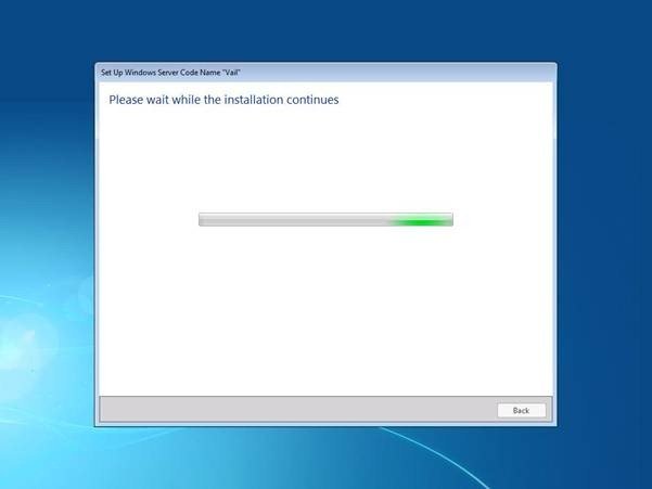 Now at this point I had some problems during install, it sat on this screen for more than an hour and a half, I had to use the Task Manager to end this and then launch explorer.exe, from what I can tell it has had no adverse effects but this just goes to show how much this OS is not ready yet.