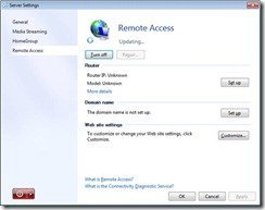 Remote access has had some changes with DYNDNS.org and Go Daddy being added as a domain updaters, this now means you aren’t restricted to http://yourdomain.homeserver.com you can now have http://yourdomain.dyndns.org allowing a little more flexibility. There has also been some changes to the way your WHS website looks, you can now customise the site logo, background and add custom website links to your favourite sites.
