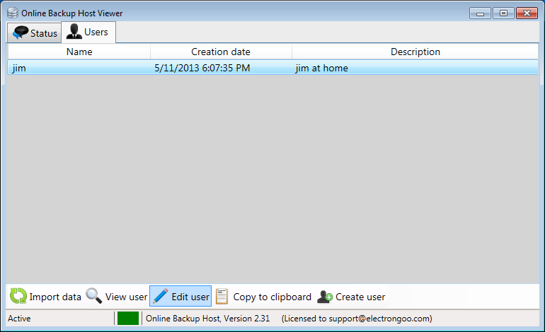 As the administrator of your OBH server, you can create, delete, and monitor each client that you give access to your server storage repository. The simple Online Backup Host Viewer is powerful yet simple. Select an existing client from the list and you can view their usage and storage statistics.